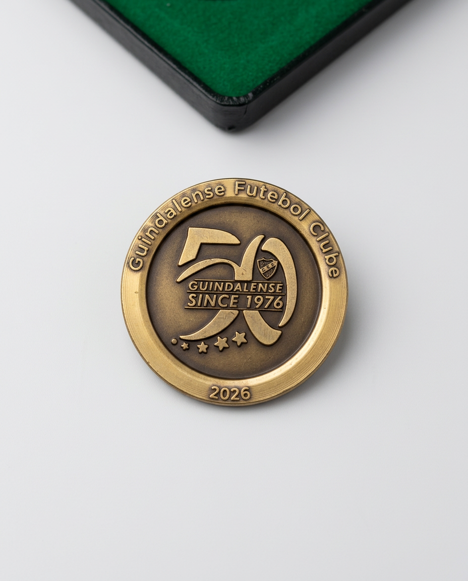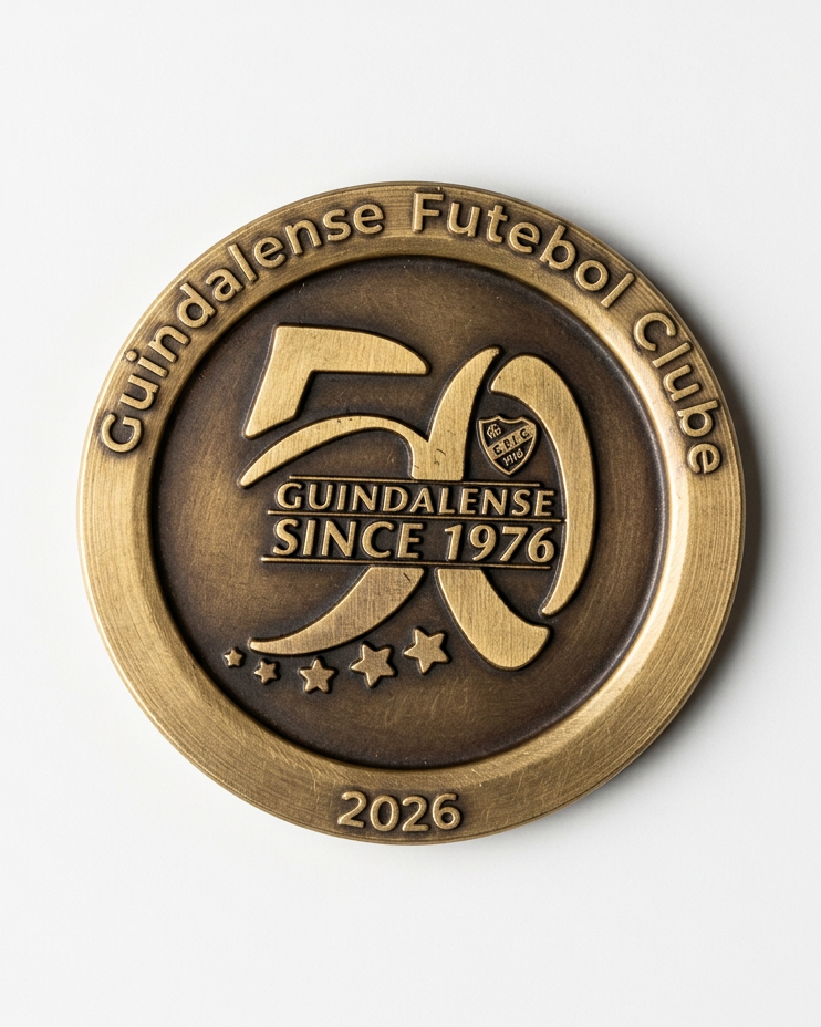 Versão compacta do troféu do Guindalense, mantendo o design em formato moeda maciça. Ideal como recordação ou peça de coleção.